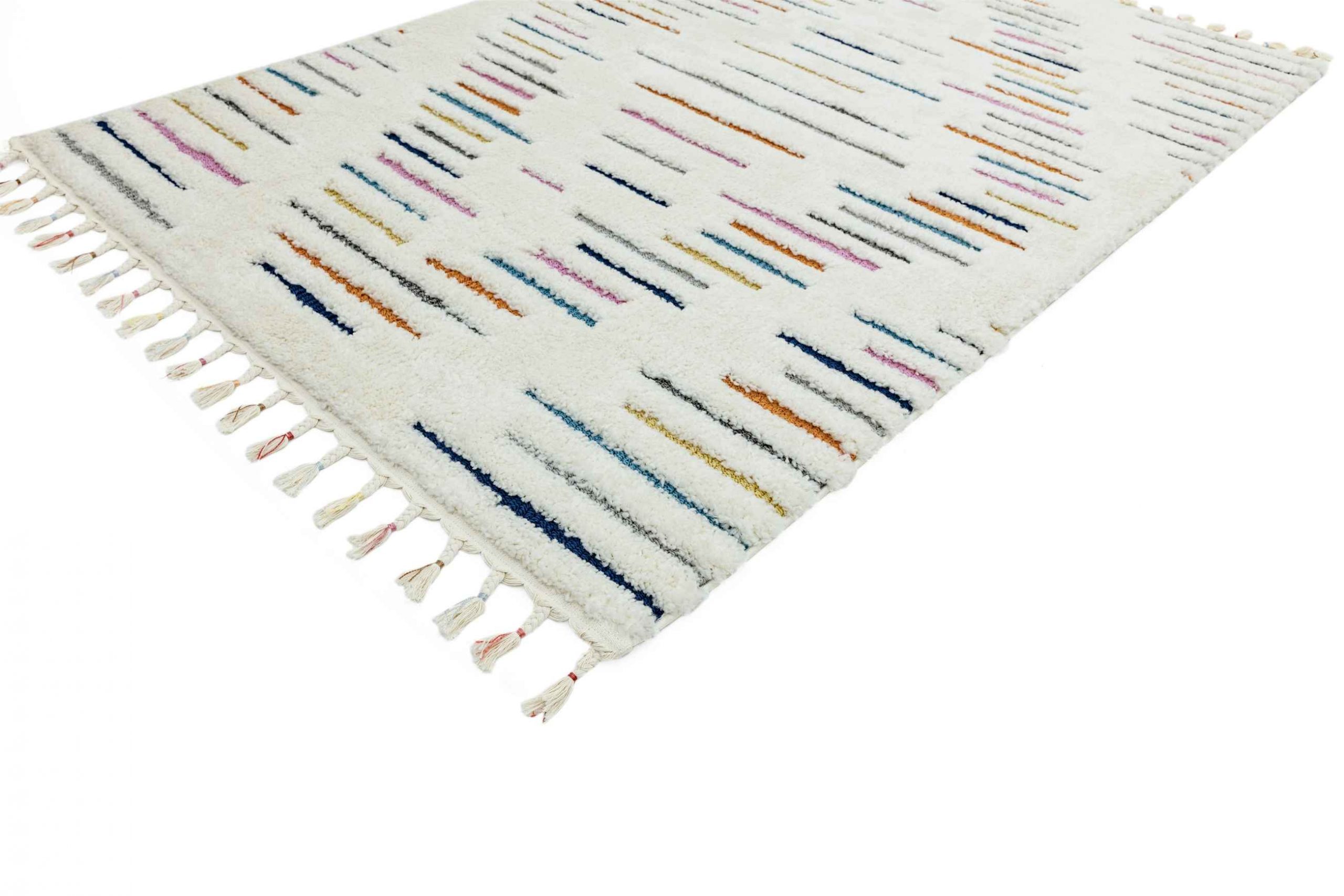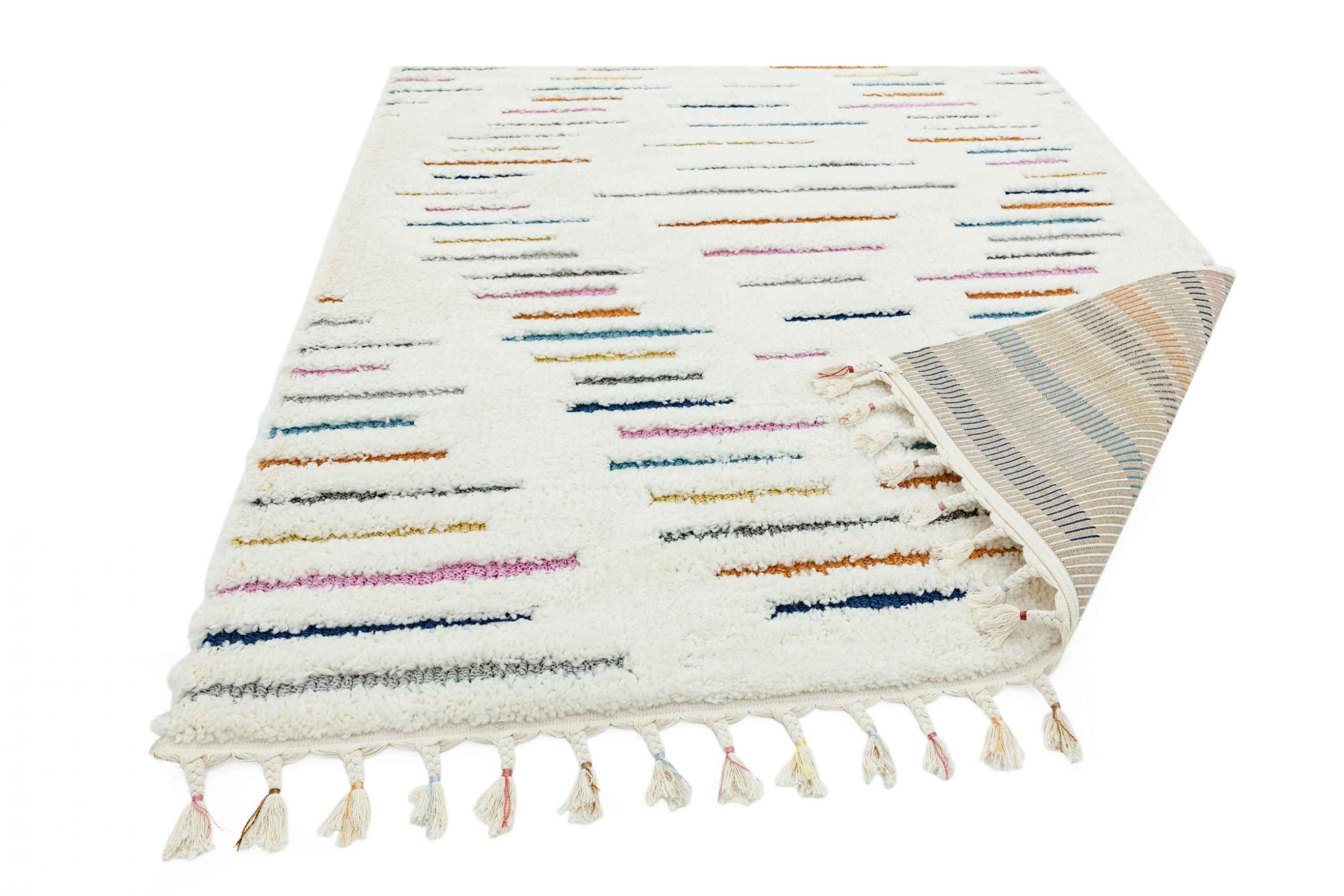 Using a cut and loop method, the Ariana collection boasts a luxuriously soft deep pile and high-low pile finish. Available in a choice of multicolored and tonal modern Moroccan inspired designs, each piece is finished with a tassel fringe.