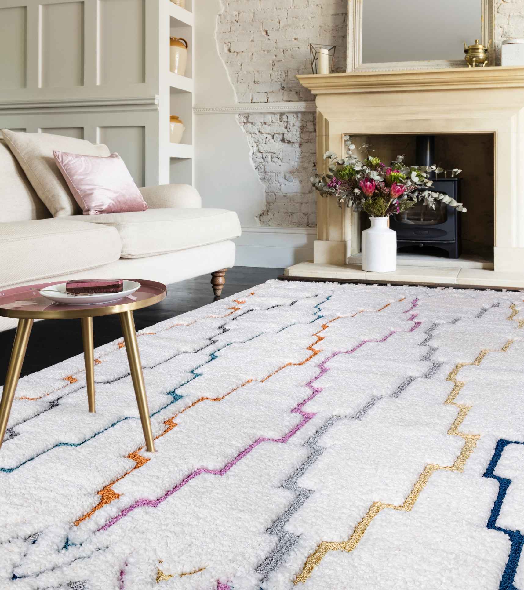 Using a cut and loop method, the Ariana collection boasts a luxuriously soft deep pile and high-low pile finish. Available in a choice of multicolored and tonal modern Moroccan inspired designs, each piece is finished with a tassel fringe.