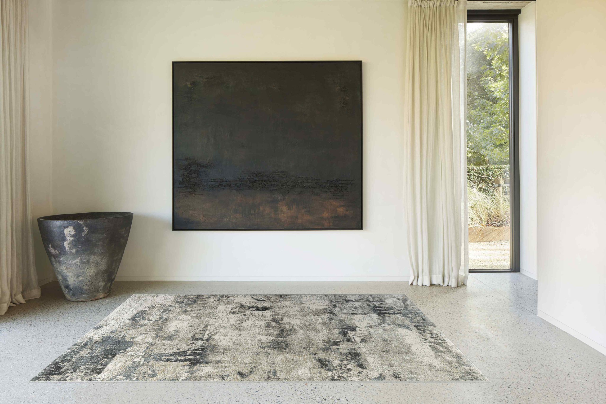 Contemporary rug in a high quality and durable make and easy to clean. A dense woven relief structured with luster and shine, in both abstract and vintage designs. Made in Belgium-Europe.