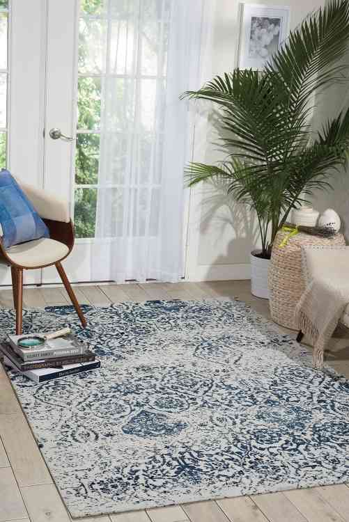 Light as feather and just as soft, this sumptuous shag rug features fluffy microfiber shag pile with rich blue and grey abstract tones. Easy-care fibers are cut in a lower pile, making for easier cleaning and upkeep with all the luxury and coziness you expect in a shag rug.