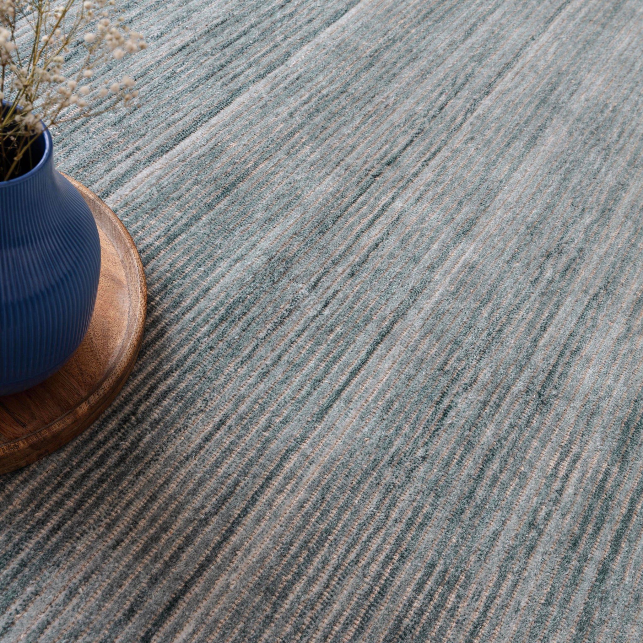 Hazy is handwoven in a durable low pile with alternating loop and cut creating a subtle ribbed effect. Finished with tip-shearing for a softly distressed texture.