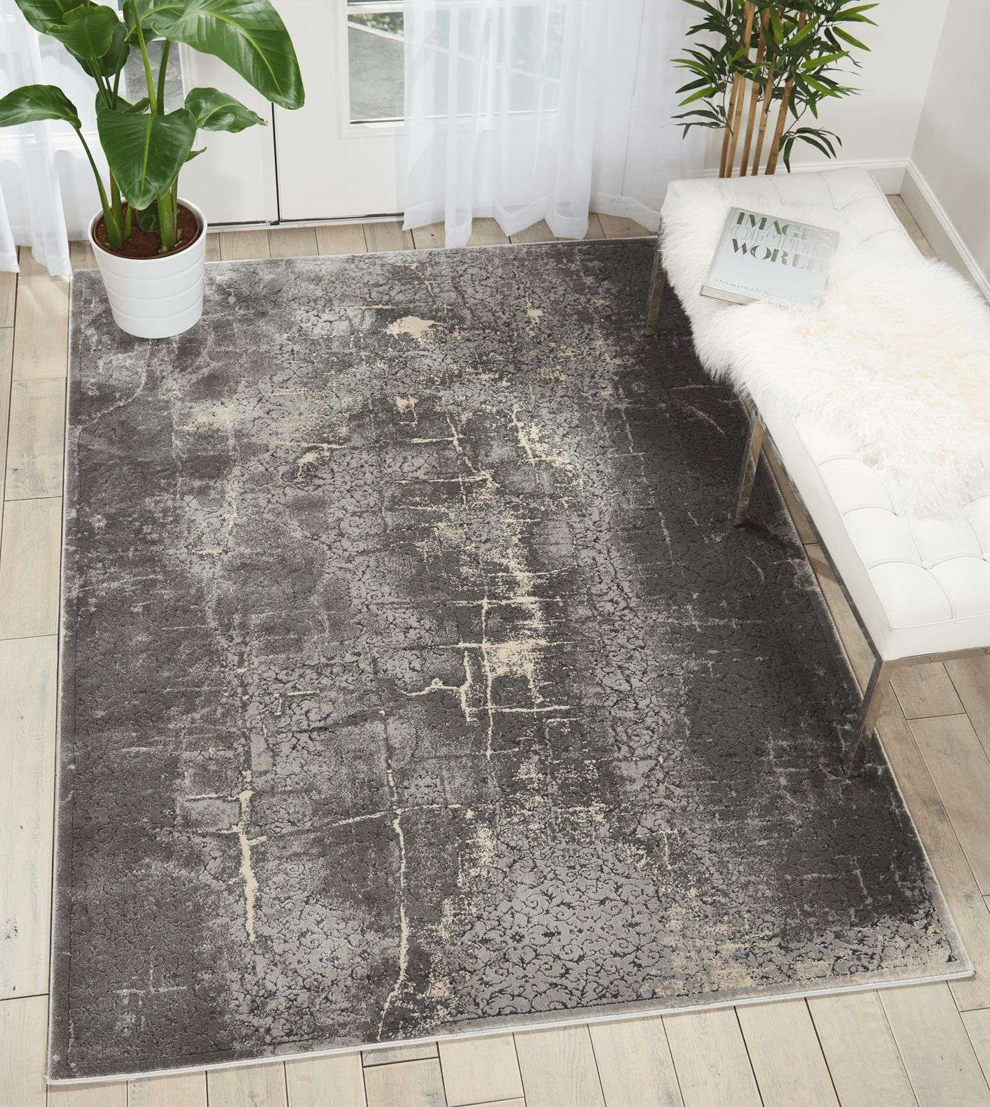 A stunning interplay of tones, shading, and texture make this Kathy Ireland® Home Heritage Collection rug truly unique. Earth and stone hues invoke images of urban life and the marks of time from which it draws its character and spirit. A contemporary statement piece sure to complement any room in your home.