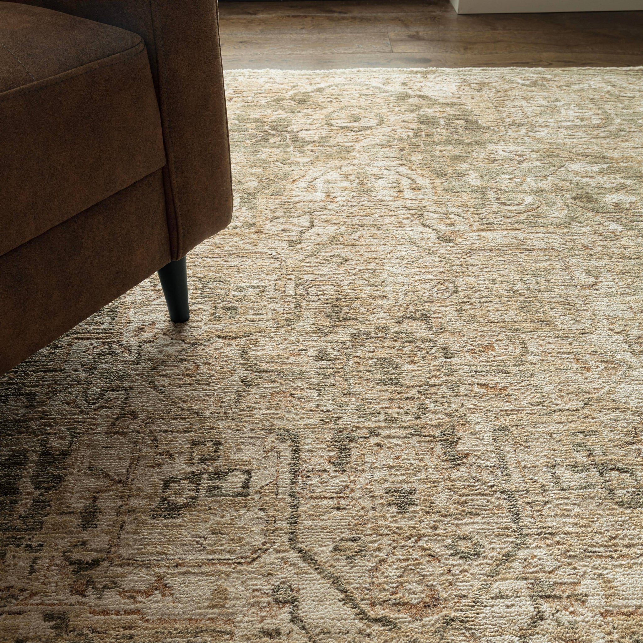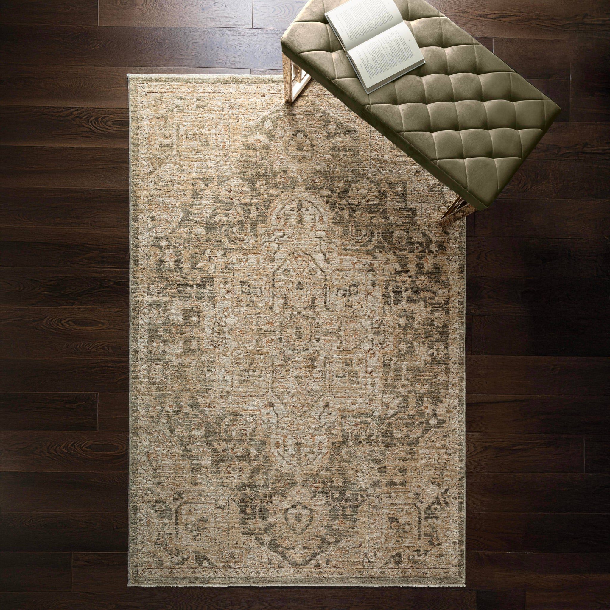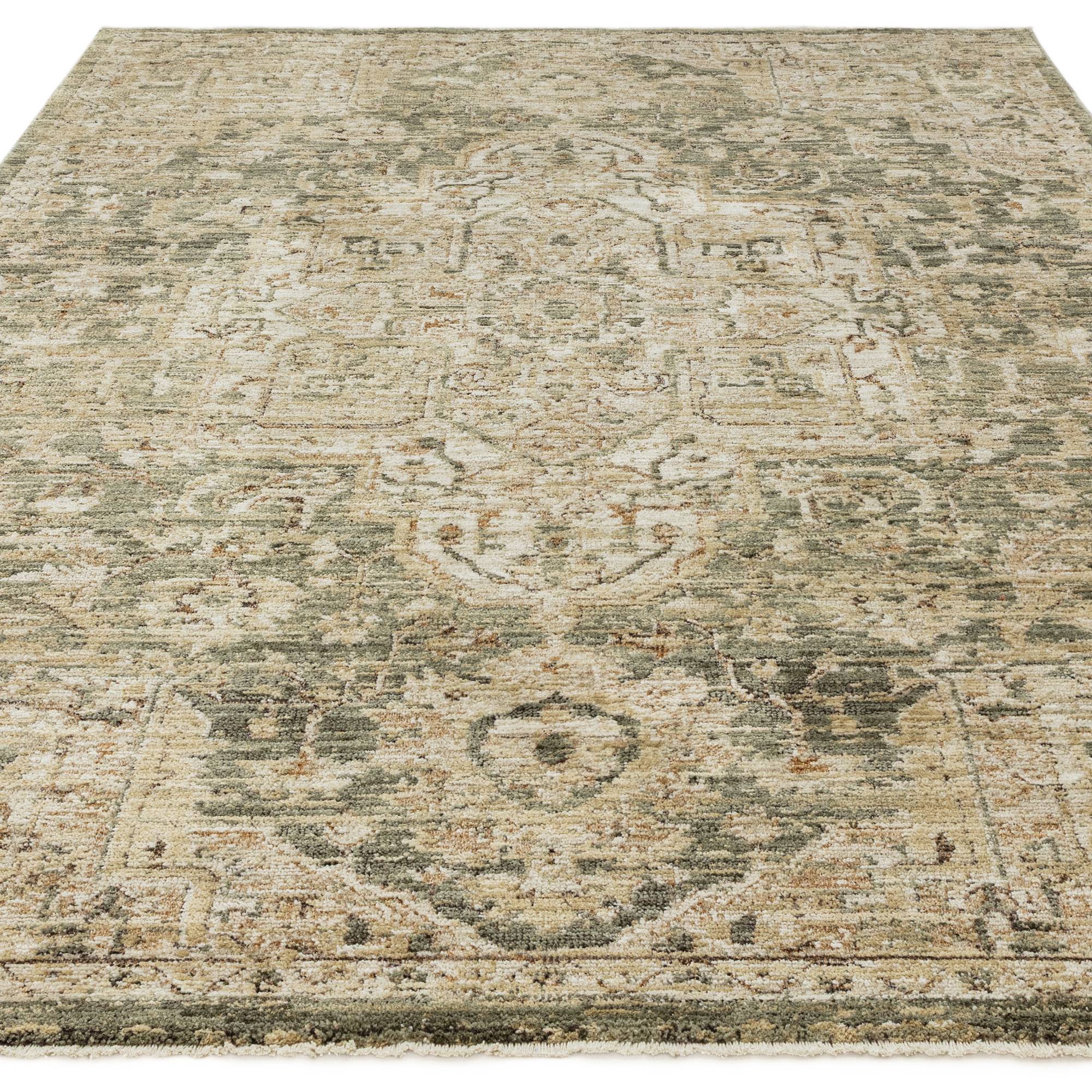 Heriz features vintage-inspired designs with a high-low pile and a luminous sheen that elevates both texture and tone.