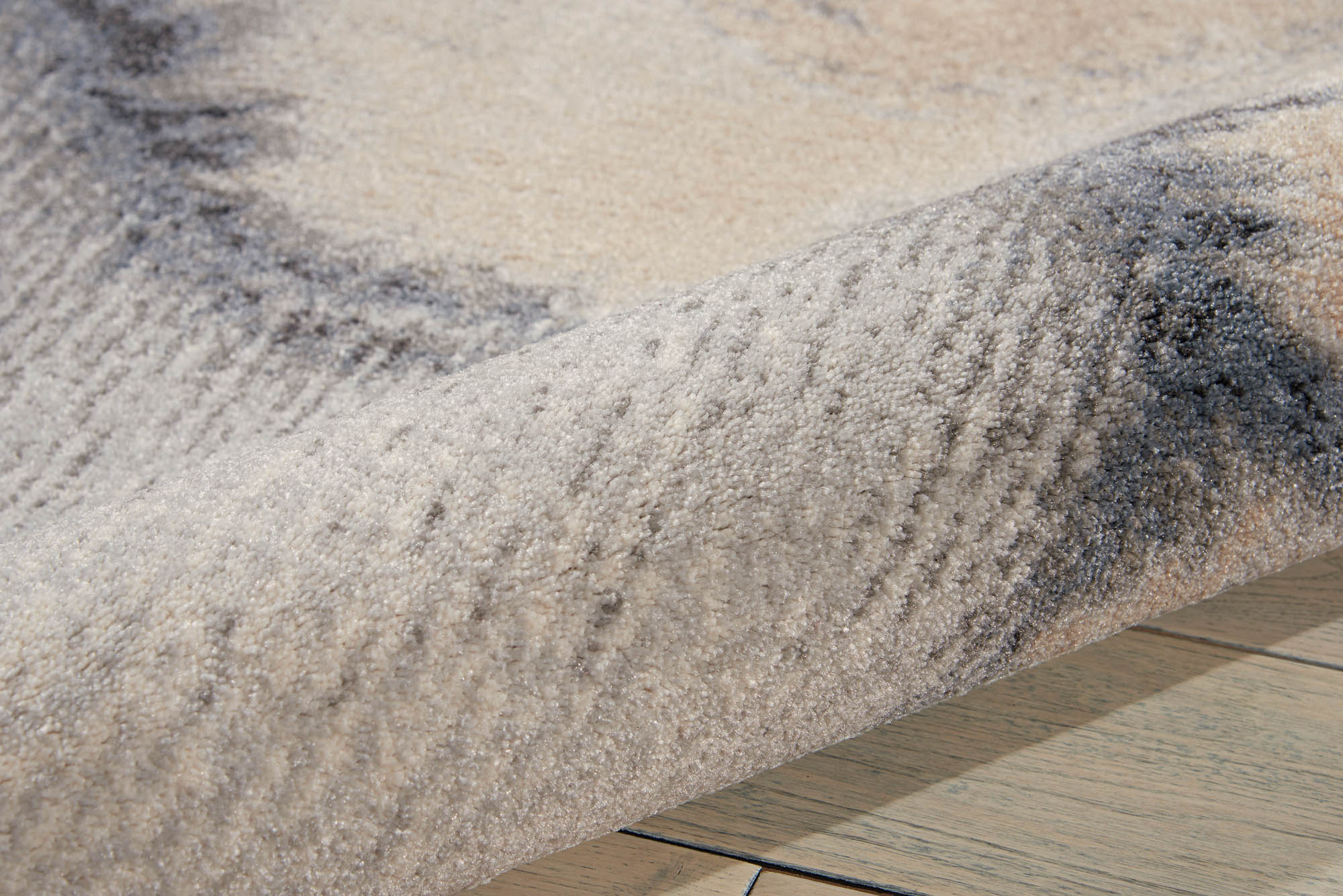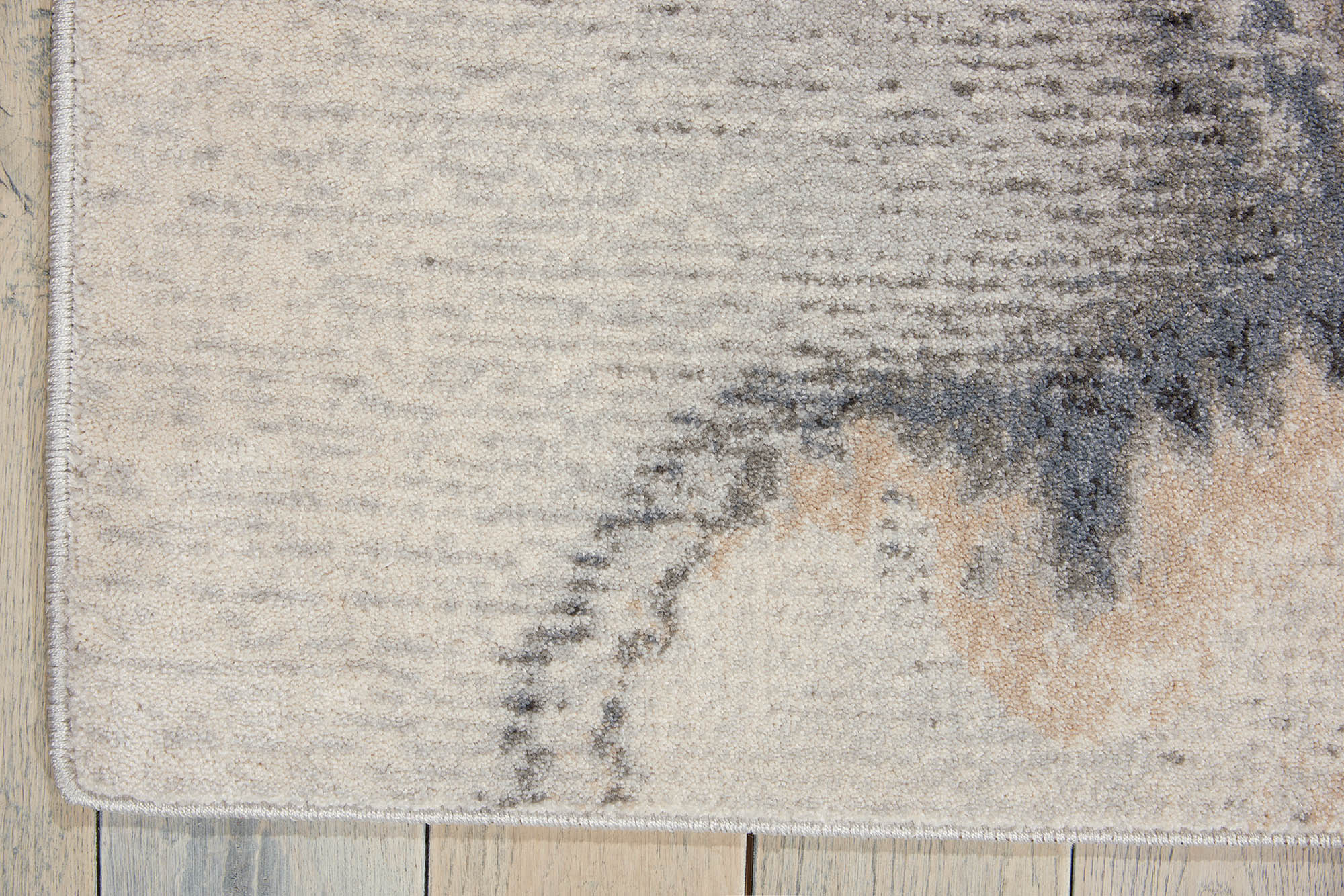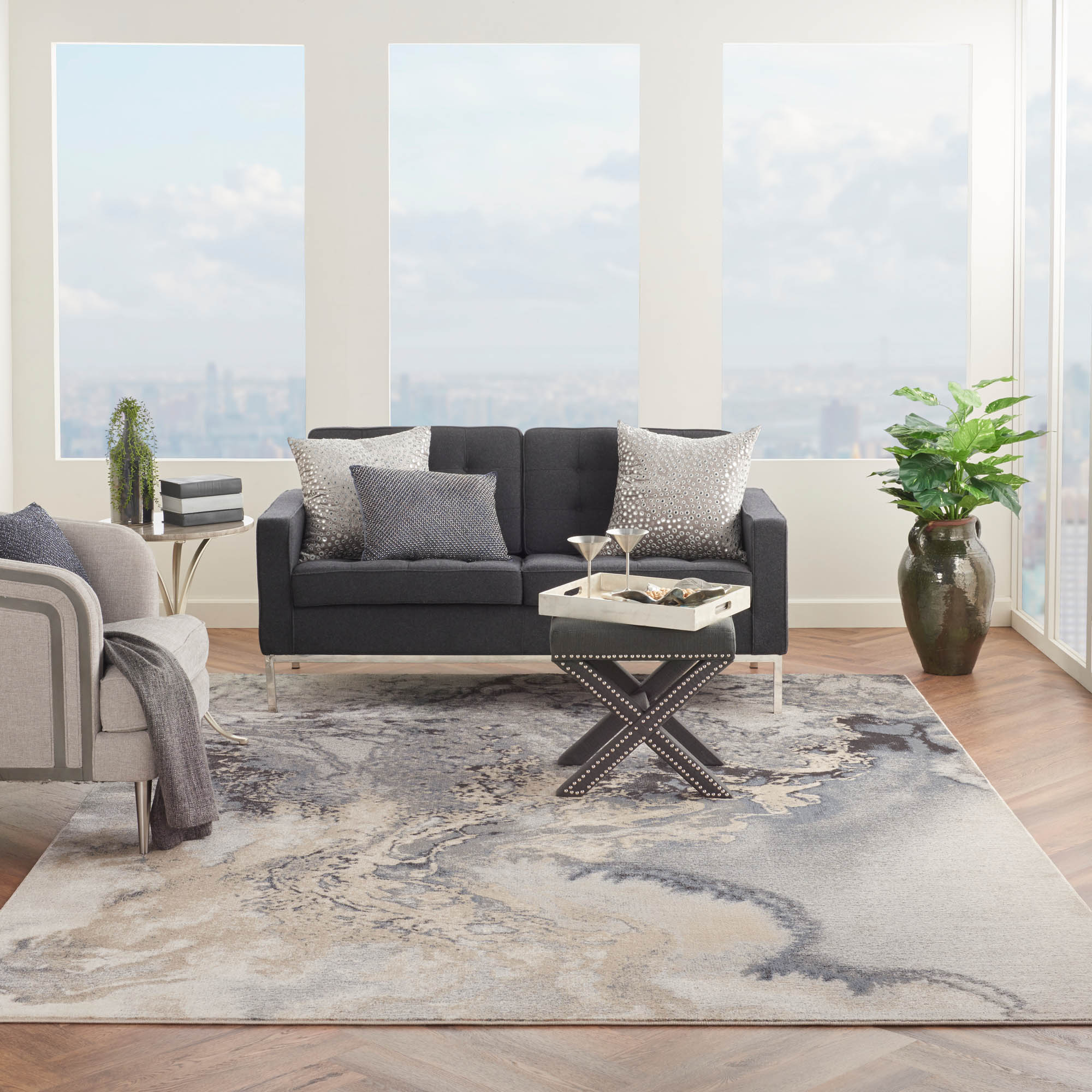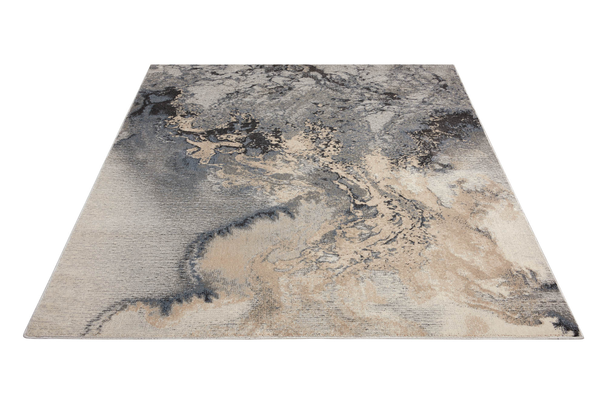 This magnificently modern Maxell area rug elicits images of abstract artistry. Simulated brush strokes and splashes of rich blue, navy, ivory, and grey tones play out on a silky cut pile for a beautiful touch of contemporary comfort in any room in the home.