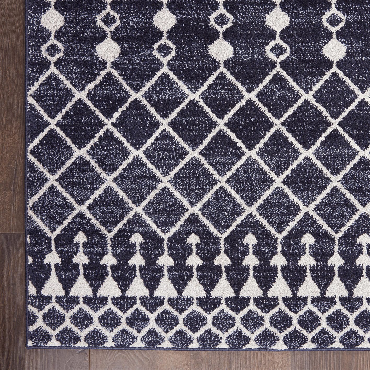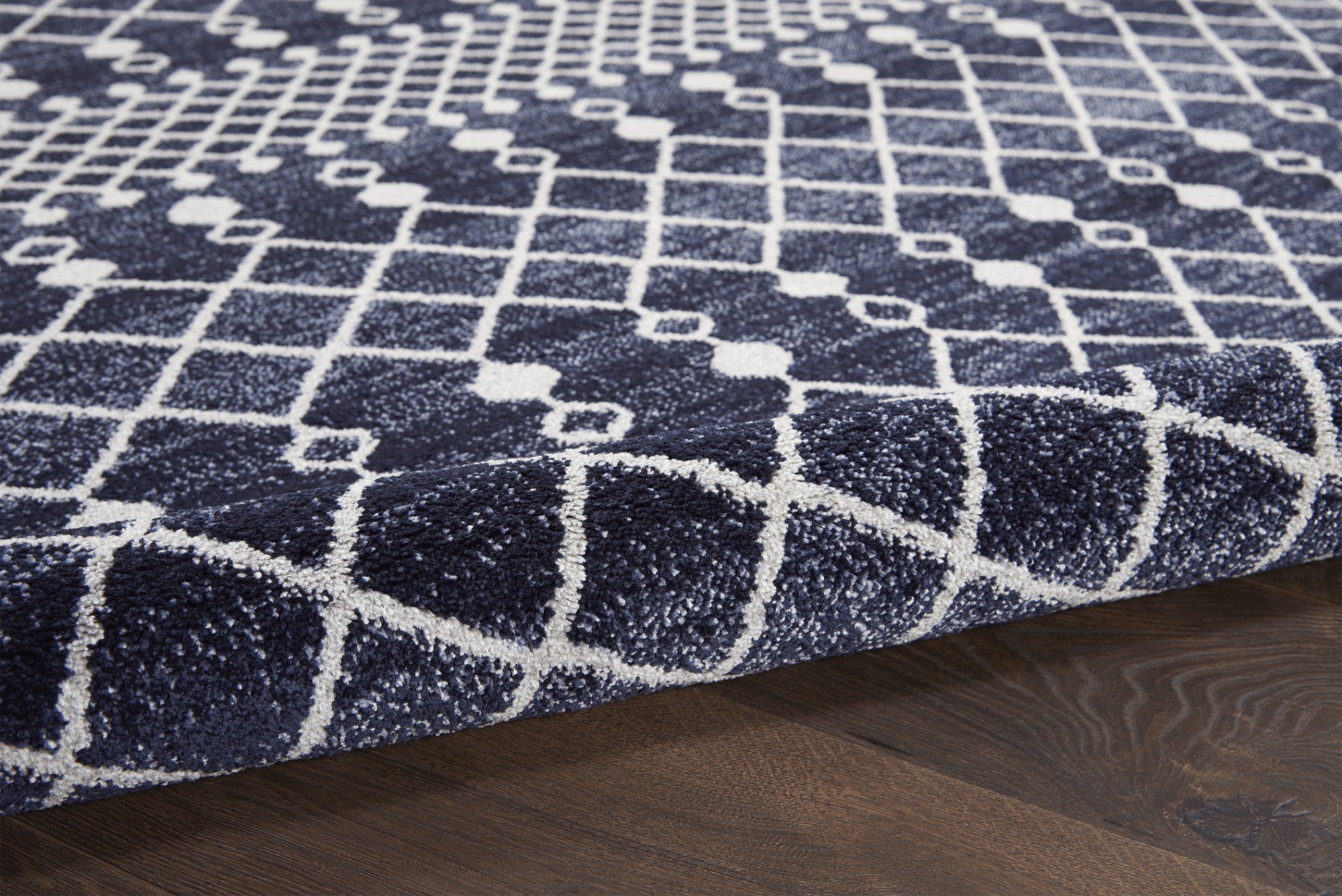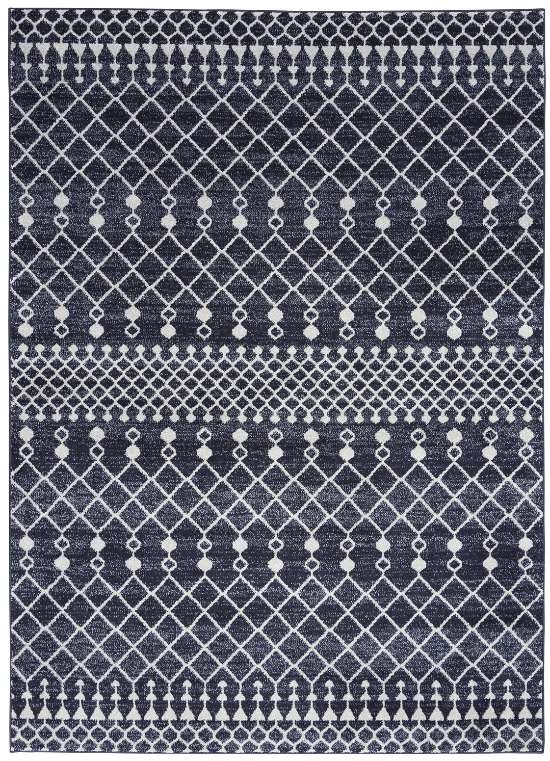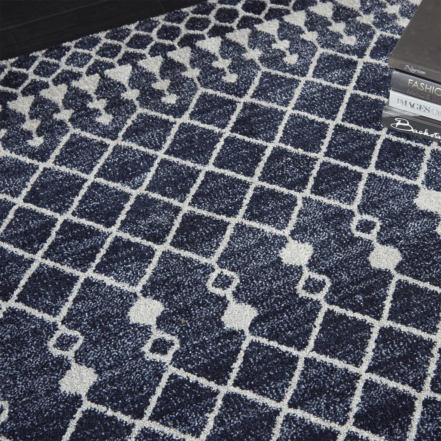 A two-tone palette of grey and navy blue gives definition to the delightful geometric pattern of this Palermo area rug, based on Moroccan tribal motifs. Pull the room together with this handsome and versatile rug, in soft, cut pile for the modern home.