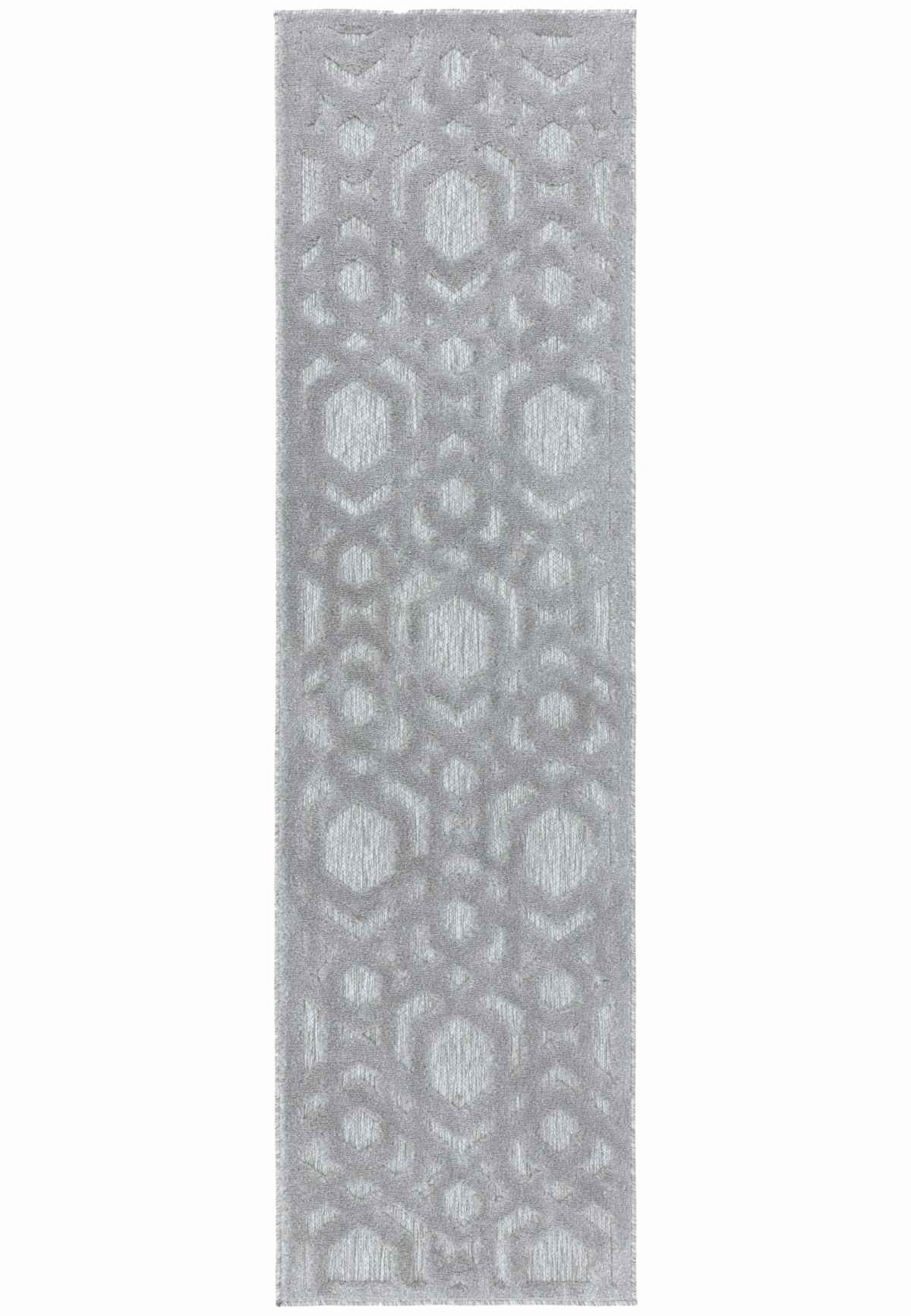 Featuring a practical machine woven construction, the highly durable, low maintenance Salta collection offers a number of modern geometric designs in a choice of popular neutral shades. A textured velvety soft high low pile offers a luxurious underfoot experience suited to both indoor and outdoor living. Offered in a selection of sizes, including a runner rug option, this versatile area rug would suit any contemporary living space.