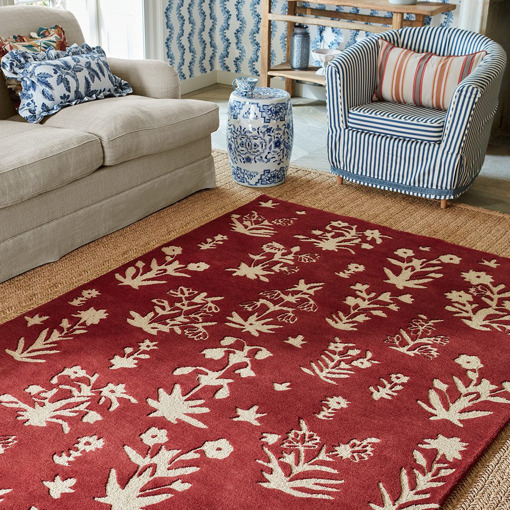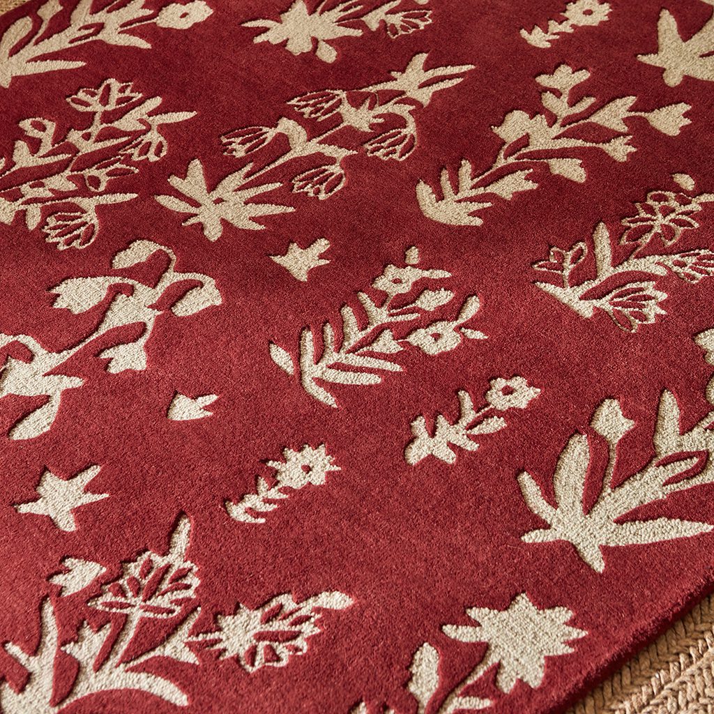 Inspired by woodblock techniques, Woodland Glade is a reminder of the simplicity and beauty of nature, and the restorative powers that the woods provides. The design is a chance to reconnect underfoot, with classic floral designs, indigenous and reflective of the English countryside. Seasonal tones combine classic English hues with a modern twist, in this case, a deeply luxurious yet earthy Gold. Made with 100% wool, the texture of the rug suits this design perfectly.