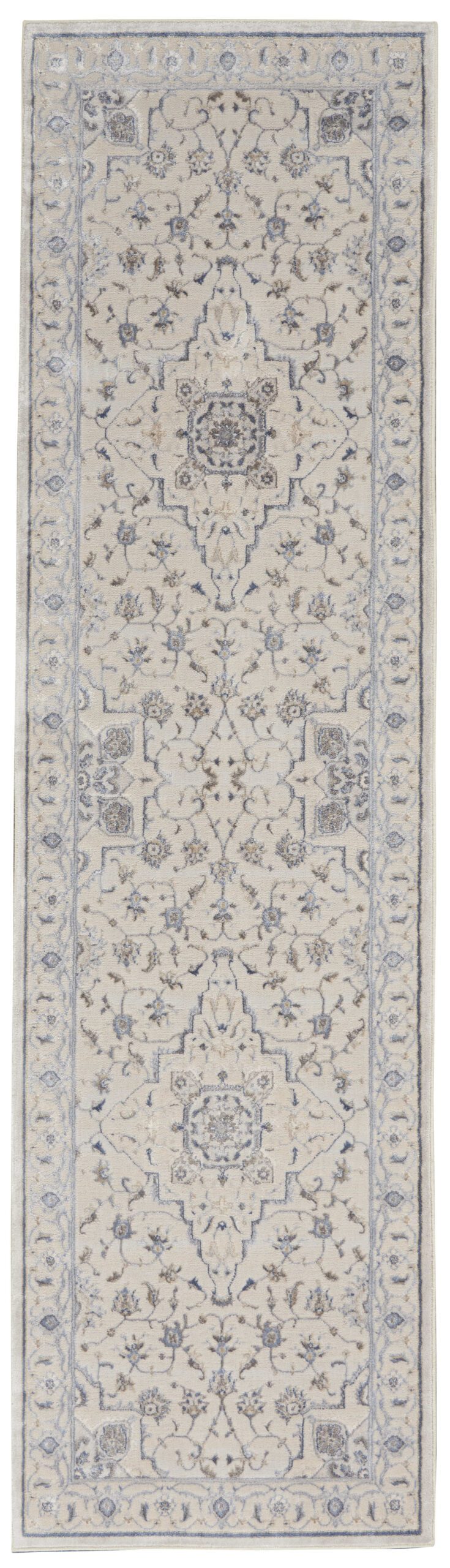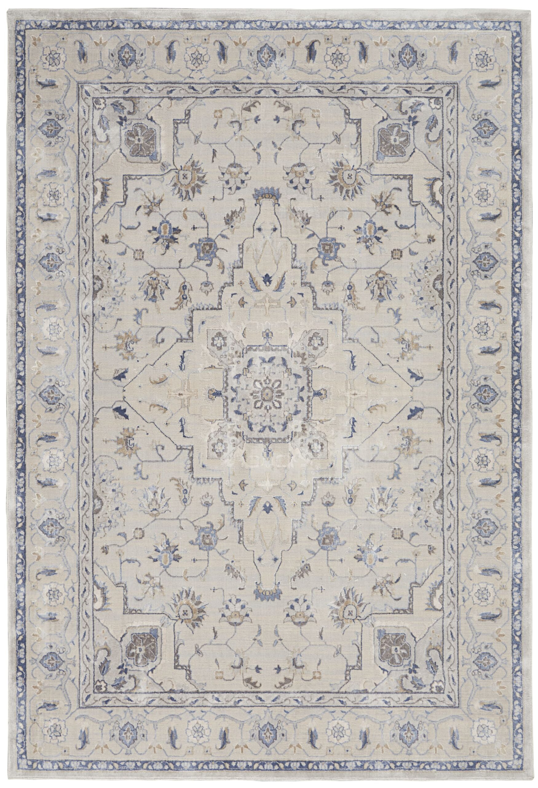 Classic Persian rug motifs take on contemporary appeal in a modern palette of ivory and grey. The delicate garden design eliminates excess detail for a serene and contemporary effect. This Silky Textures rug lives up to its name with stunning luminosity.