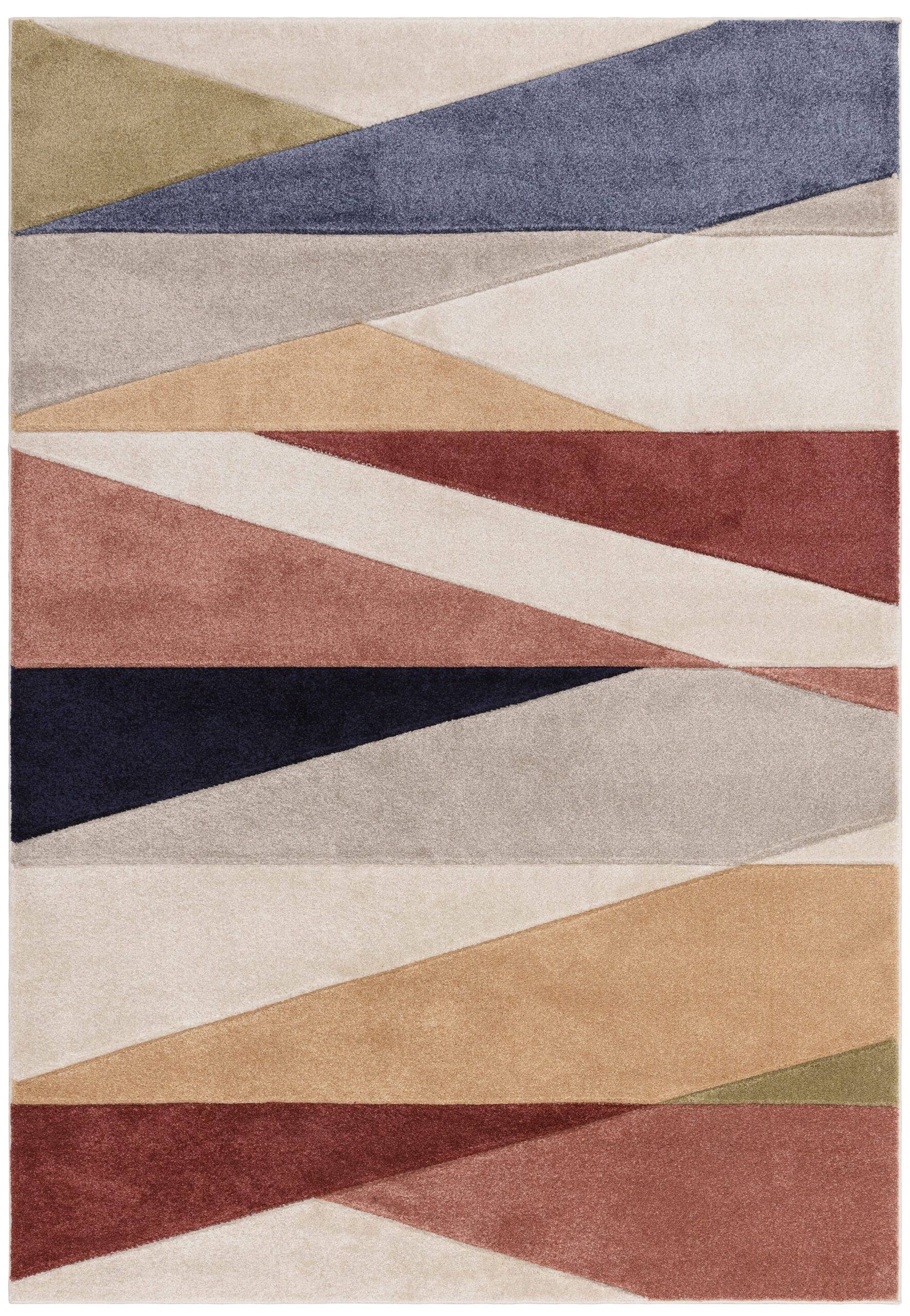 Bold geometric designs, hand carved to add texture and enhance depth of pile.