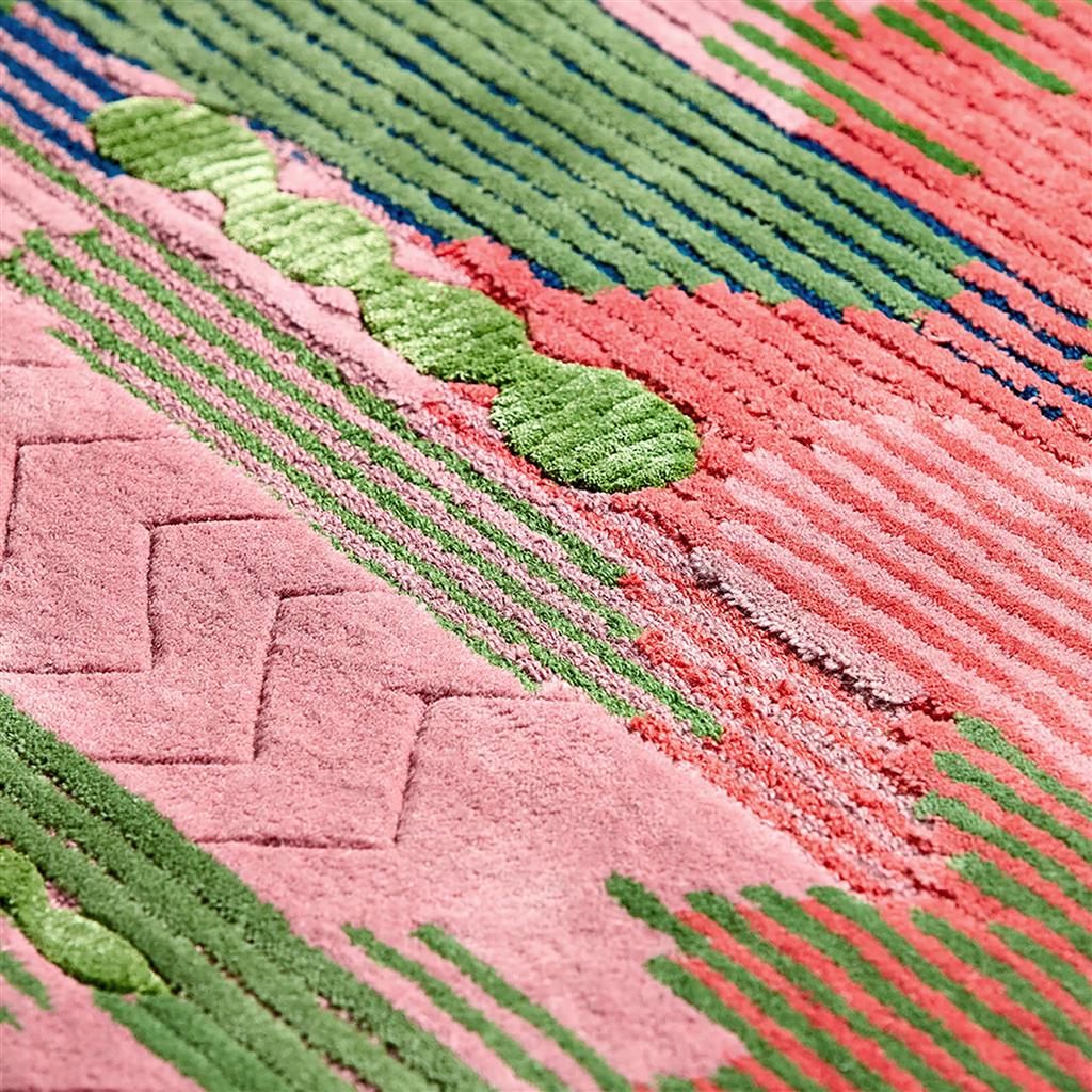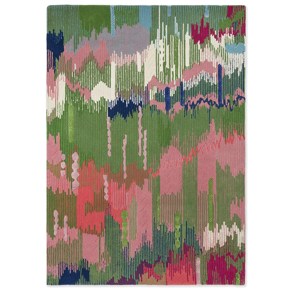 Evoking the sensation of raindrops drenching the countryside, Wilderness captures this abstract poetic experience with a striking interplay of colour and texture. Its bright floral accents transition and blend in an ombre effect, reminiscent of cascading hills, creating a beautifully atmospheric rug design.